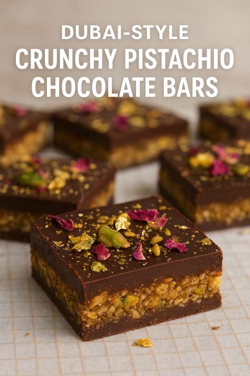 These Dubai-Style Crunchy Pistachio Chocolate Bars are more than just dessert — they’re an experience. From the glossy chocolate layers to the jewel-like pistachio and gold topping, they bring a taste of Middle Eastern elegance to your home kitchen. 🌟
