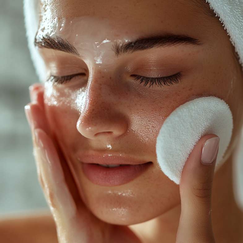 - Gently wipe your face with a pad, focusing on areas prone to excess oil and impurities, such as the T-zone.